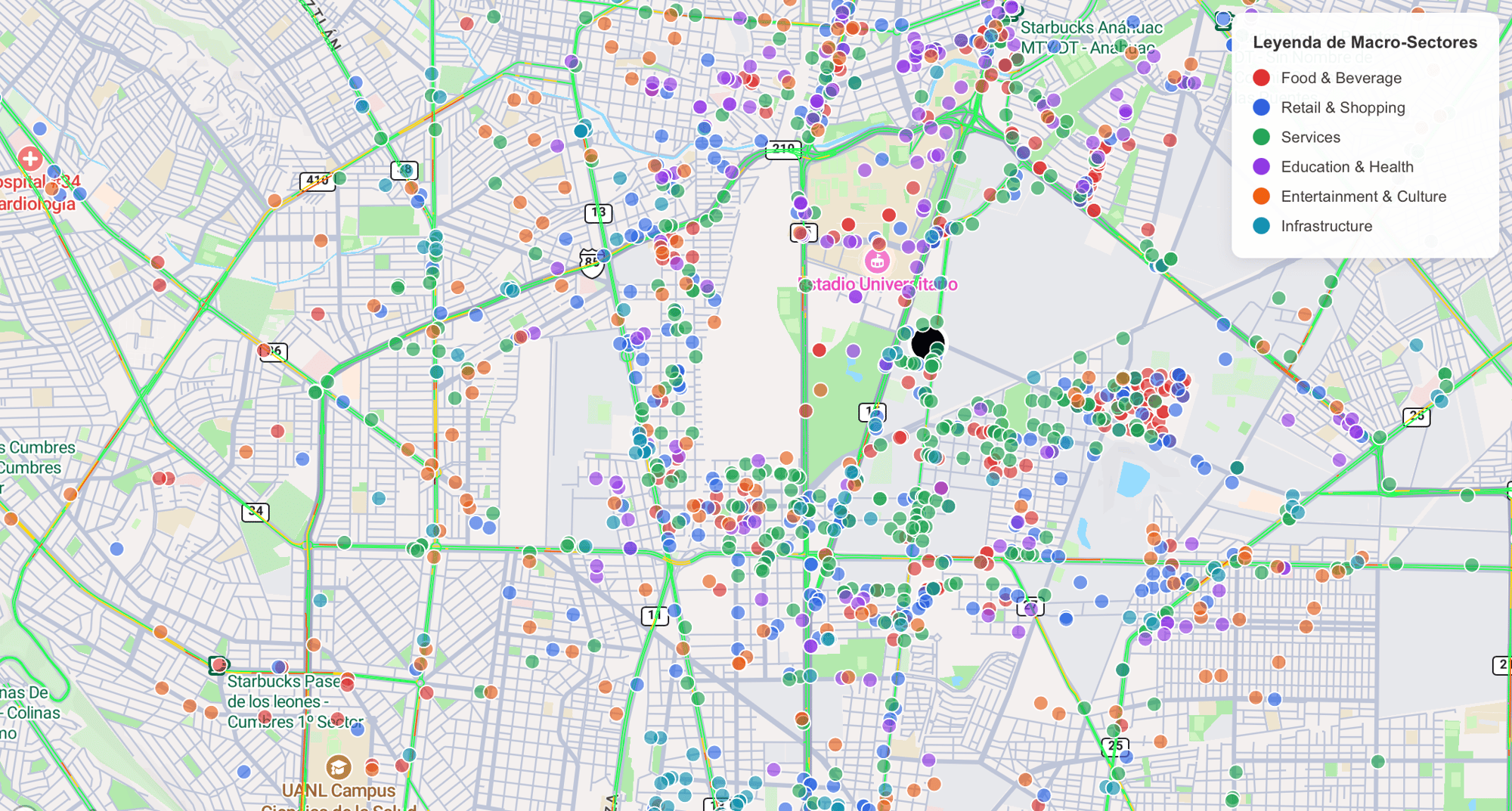 • Isócronas: Áreas de influencia reales por tiempo de traslado, no solo por radio.